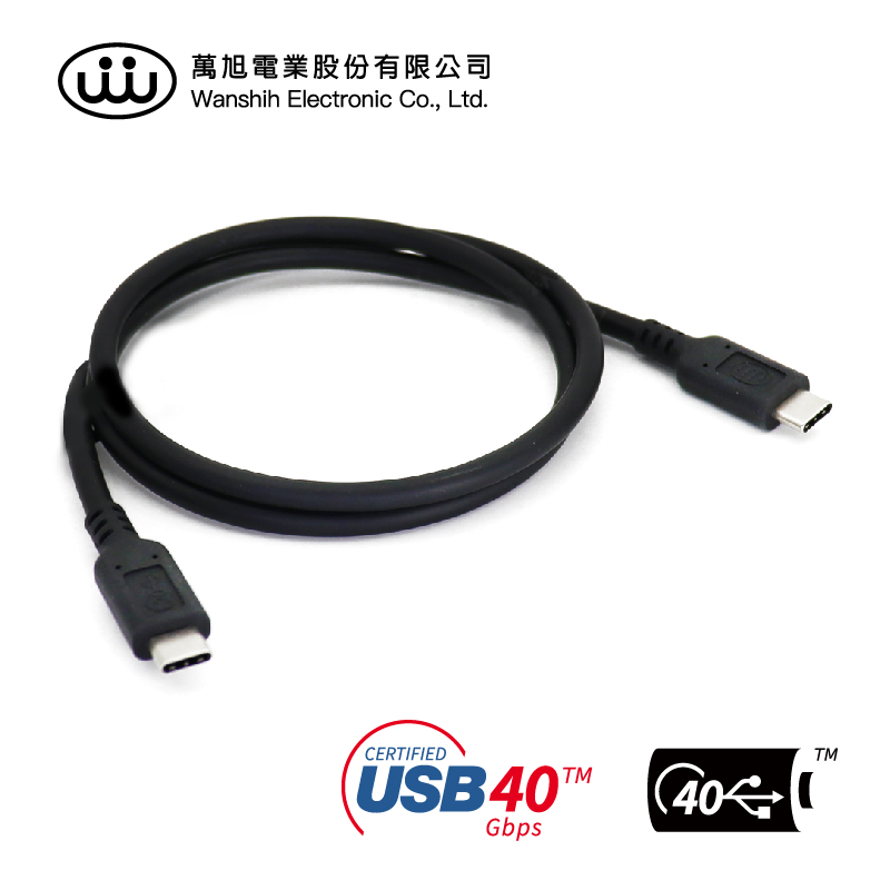 Wanshih Electronic Co., Ltd. 0.8m USB4 Gen 3 cable has been approved by USB-IF certification (TID 5710). The feature of USB4 Gen 3 high-speed transmission includes the data transfer speeds of up to 40Gbps via two-lane transmission, supporting the PD3.0 E-marker solution with 100W power output, supporting the single 8K display or dual 4K displays at 60Hz and compatible with USB 3.x, USB 2.0 and Thunderbolt 3 devices. Wanshih is having professional design team and reliable manufacturing capabilities, we continually develops high-speed transmission solutions, which immediately satisfy customized demand.